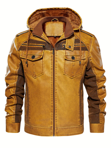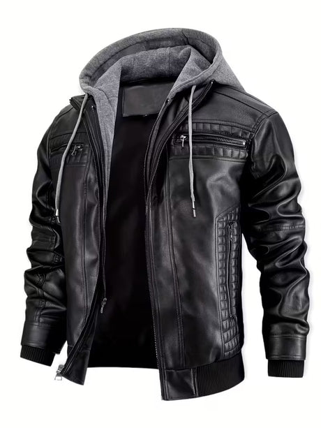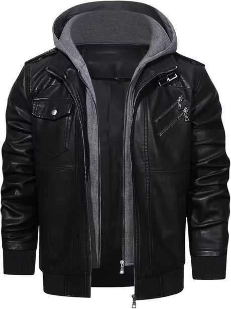 Sale price $175.00 Regular price $210.00Unit price /UnavailableMen’s Leather Motorcycle Jacket with Removable Hood