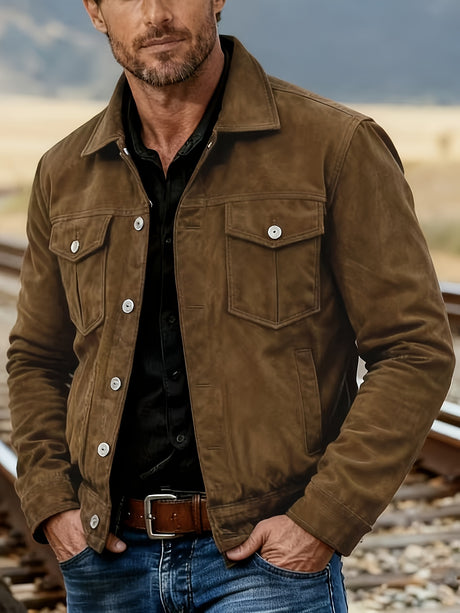 Sale price $131.50 Regular price $180.00Unit price /UnavailableMen’s Vintage Suedette Sports Jacket – Solid Color Retro Lapel Button Coat