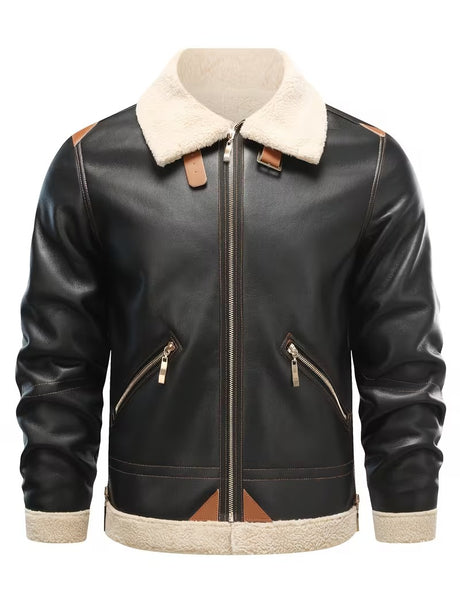 Sale price $139.99 Regular price $169.00Unit price /UnavailableMen’s Faux-Fur Lined Leather Biker Jacket – Winter Streetwear